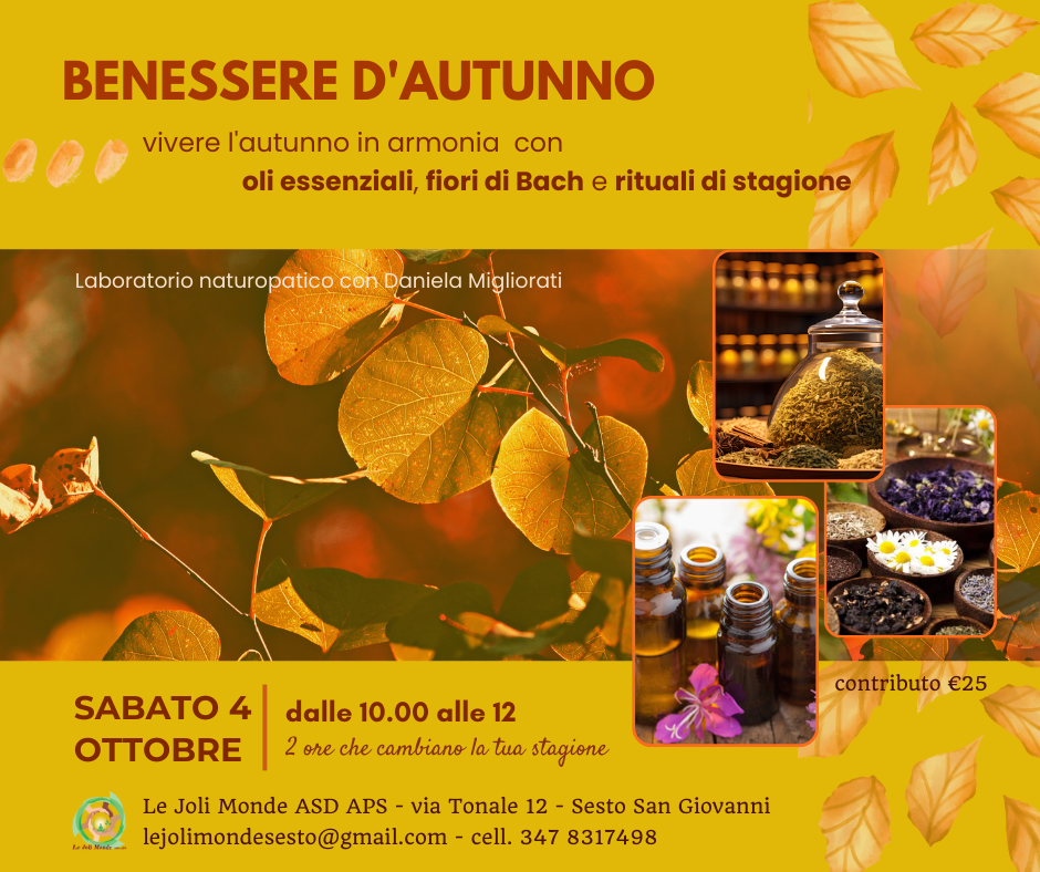 SABATO 4 OTTOBRE – Laboratorio naturopatico – 2 ore di pratiche e benessere